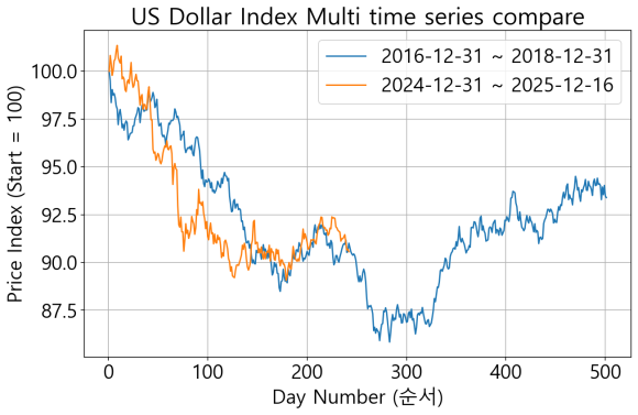 현재 달러 인덱스와 미국 10년물 국채 금리 흐름은 트럼프 1기 및 2026년 예상 경로와 유사한 궤적을 보이고 있습니다.,, 시나리오 중 무엇이 우세할지 알 수 없으므로 각 시나리오를 지속 모니터링하며 기민하게 대응해야 합니다.