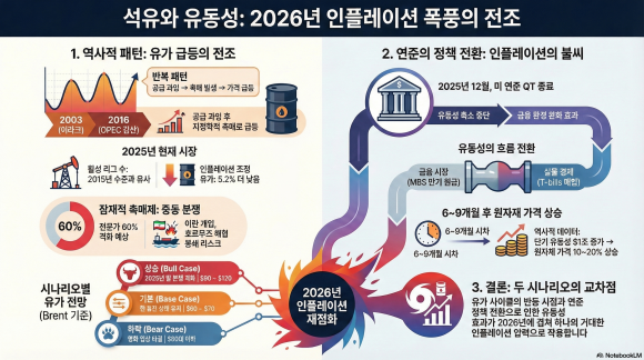 핵심은 유동성의 방향입니다. 연준은 장기채가 아닌 ‘단기 국채’ 위주로 재투자를 집중해 실물경제(Main Street)로 돈이 흐르게 만들고 있습니다. 이는 기업의 재고 비축과 원자재 수요를 자극해 인플레이션을 다시 부를 수 있습니다.